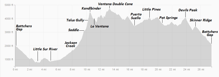 Wow! I just finished a backpacking trip to Ventana Double Cone out and back via bottchers gap and can’t imagine doing this in one day. Very impressive!