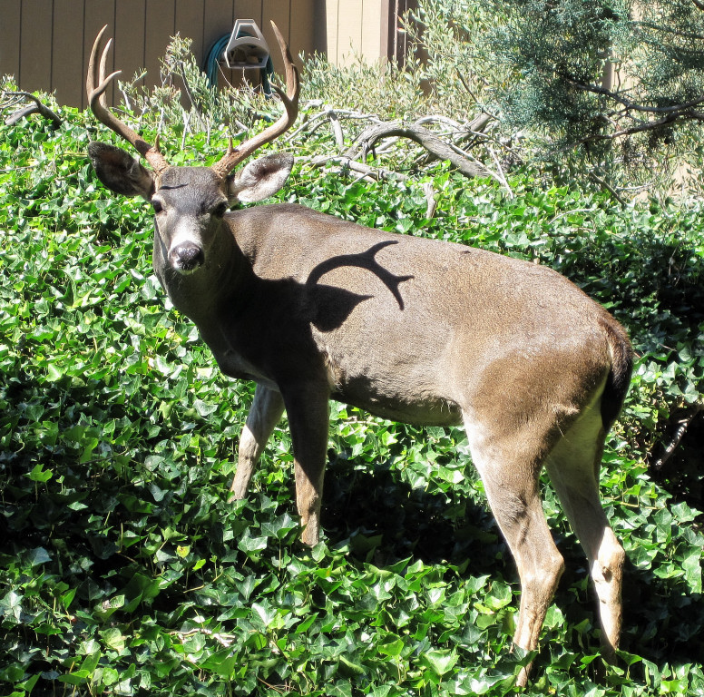 There are tons of deer all over the San Carlos hills and all the places I run at in the Santa Cruz Mountains. Here is a phot of a large buck right next to my place. He was sitting in the shade directly underneath my dining room window and I noticed the antlers. I shot this photo as he was walking away. I’ve also seen numerous fawns on the trail runs.
